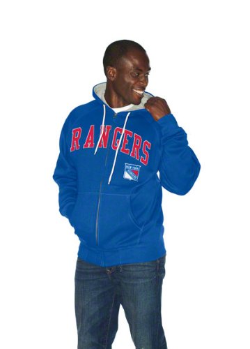 Get ready to douse yourself in New York Rangers team pride with this stylish New York Rangers Step One Full-Zip Hooded Sweatshirt. When you need a way to cheer for your team as they are sprinting for the game winning touchdown make sure you have this flashy sweatshirt. Features double layer tackle twill appliquéd team name/team shield under team name. Add this piece of Rangers apparel today.Customer Reviews